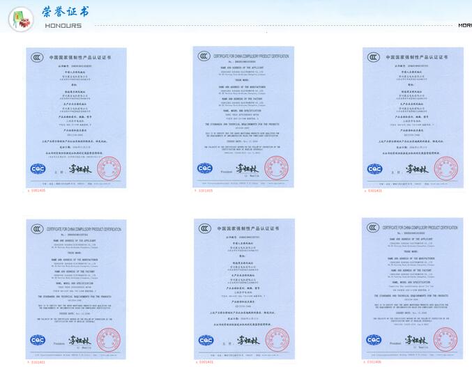 公司通過了ISO9001國際質(zhì)量體系認(rèn)證,認(rèn)證號為03814Q24383R3M;產(chǎn)品通過CCC認(rèn)證,認(rèn)證號為2002010401010432、2002010401018391、2006010401207349、2011010401467838;通過了歐盟CE認(rèn)證,認(rèn)證號為AN 50156622 0001、N8140680711002、CE-L092820-01、AN503316940001,通過了美國UL認(rèn)證,認(rèn)證號為E229599、E89593。